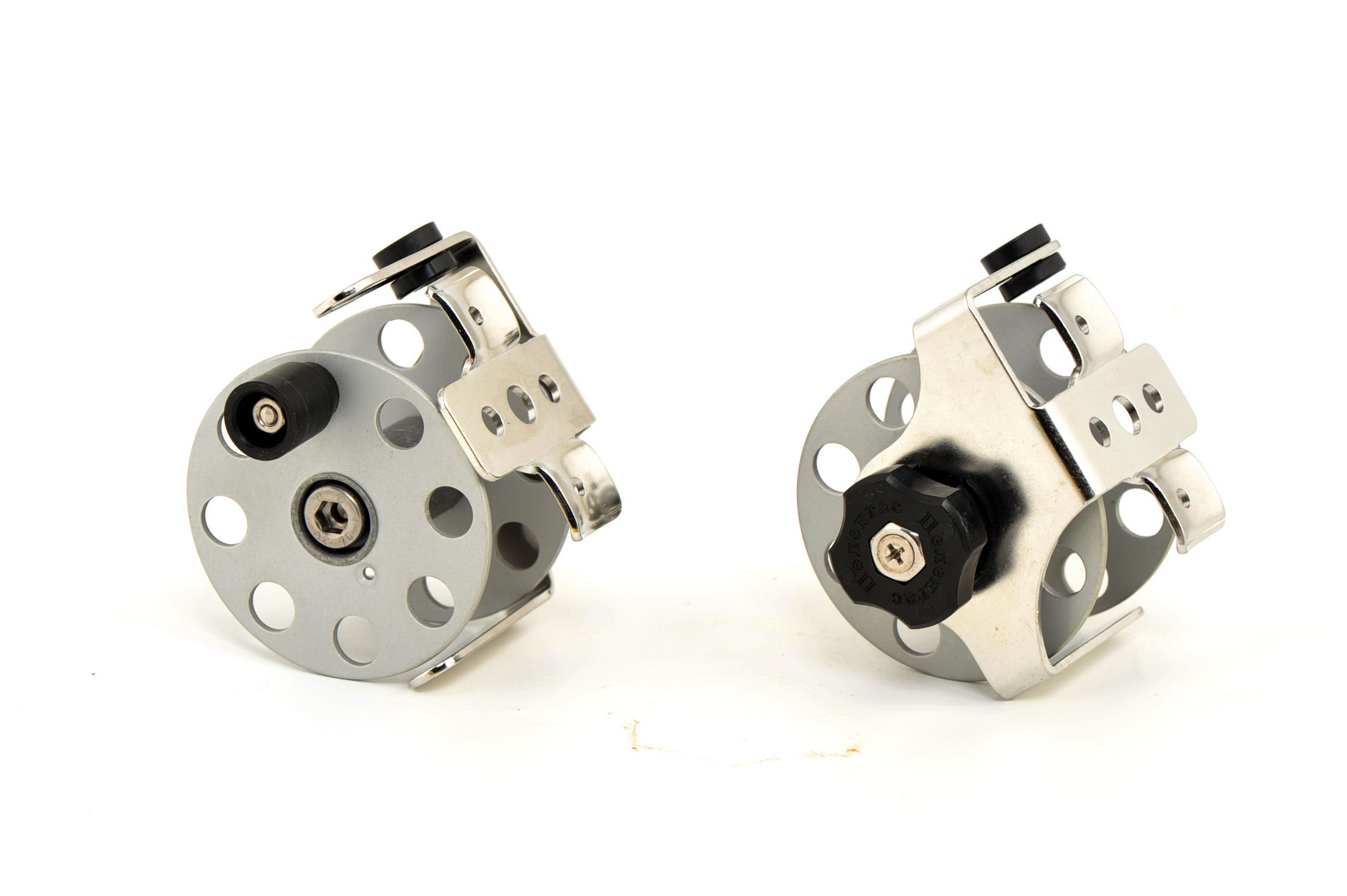 Универсальное крепление, есть варианты для левшей и правшей, очень мягкий тормоз, скользящий бегунок, защита от перехлестывания линя. Цельно металлическая, с подшипниками скольжения из дерлина (в отличии от капролона не разбухает в воде).Тщательно продуманная, многократно испытанная и просто стильный, красивый и необходимый девайс.