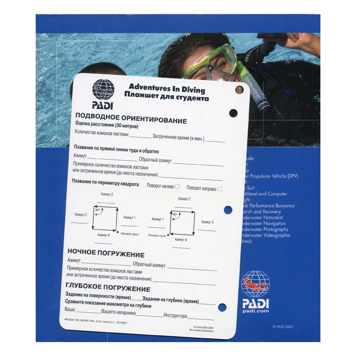 Данный учебник (русское издание) является иллюстрированным пособием, которое предназначено для дайверов к курсу Advanced Open Diver. В комплект входит планшет для планирования погружений.