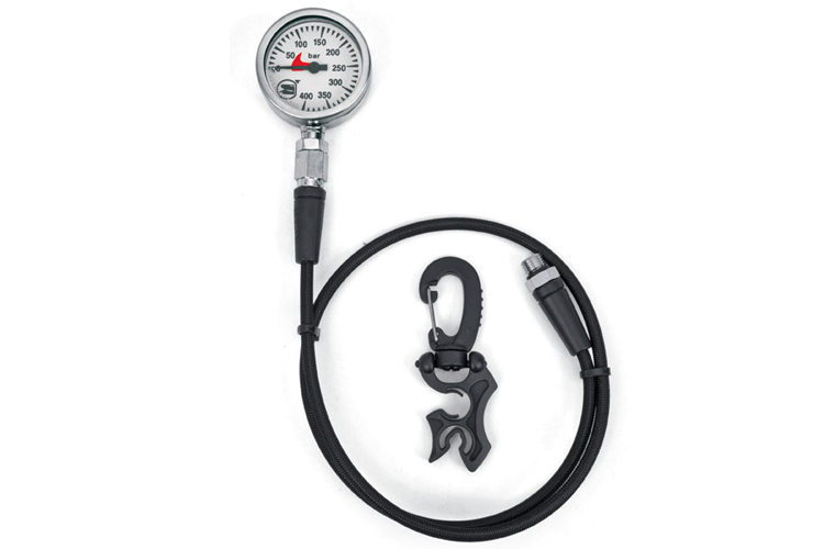 Манометр 400 бар, материал – хромированная латунь, пластиковые линзы, длинна шланга – 80 см, в комплекте держатель для шланга с карабином. Xtreme HI 80 см Хромированная латунь. Пластиковое стекло. Держатель для шланга.