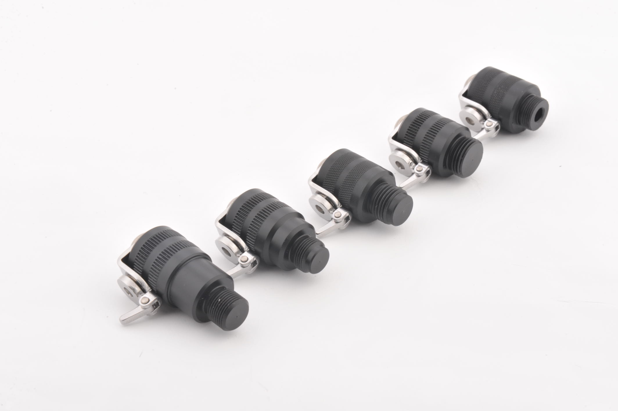 Пасивный линесброс в конце ресивера - самое правильное место для размещения линя. При такой намотке максимально используется длинна ружья, меньше витков линя, а значит и меньше вероятность его запутывания при выстреле, да и сопротивление воду меньше. Шнур по всей длине прижат к ресиверу, что ощутимо уменьшает парусность и улучшает маневренность в сложных условиях, также уменьшается вероятность зацепа линем за препятствие под водой. При намотке гарпунной оснастки вдоль ресивера, остается свободным место под катушку, поплавок, фонарь. При этом есть возможность поставить сбрасыватель линя как сверху ресивера, так и с правой или левой стороны. Существует распространенное мнение, что пасивный линесброс не совместим с резиновым амортизатором. Мы попытались решить эту проблему, используя в качестве удерживающего элемента мощный магнит. В отличии от пружин, в нашей системе нет постоянного сопротивления при натяжении и сбросе линя. Система работает в двух положениях: замкнуто, разомкнуто. При этом магнит постоянно ставит линесброс на взвод Усилие сброса подбиралось с учетом использования мощного амортизатора, в 3-х палых 7мм перчатках. При замере в килограммах - от 2 до 5 кг., в зависимости от намотки. Еще одно преимущество - это простота установки на любое ружье с резьбой под закачку в торце ресивера. Выкручиваем предохранительную пробку, закручиваем переходник и собственно линесброс, высталяем в понравившемся положении и затягиваем подручным предметом (монетой, ножом и т.д.).