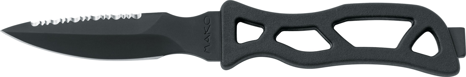 Нож Mako 2 сделан из нержавеющей стали весом в 100 г. Твердость 55-56 HRC. Длина ножа 23 см, а длина лезвия 11 см. Поставляется с удобными ножнами. Возможность крепления на руку или ногу.