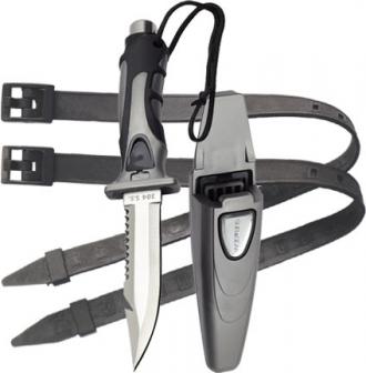 Этот подойдет нож для любого дайвера или подводного охотника. Выполнен из стали марки 304. Основные характеристики: Фиксация в ножнах кнопкой; Мягкие вставки на рукоятке ножа; Длина: лезвия - 11,5 см, ножа - 23 см