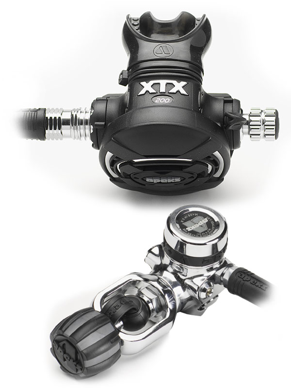 Для регулятора XTX200 был разработан эргономичный рычаг Вентури новой конструкции, которая уменьшает попадание песка внутрь прибора. Плюс к этому рычаг Вентури дополнен храповых механизмом, работу которого можно проследить и на ощупь, и на слух. Также в регуляторе XTX200 использован выпускной клапан новой конструкции, улучшающий дыхательные характеристики регулятора.