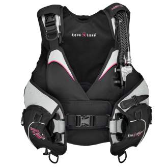 Aqualung Pearl снабжен регулируемым поясом и плечевыми ремнями с расширенными регулировками, что позволяет идеальным образом подогнатьего по любой фигуре. Кроме того, жилет снабжен плюшевой спинкой и запатентованными нагрудными чашечками, благодаря этому Pearl можно назвать истинно женским компенсатором плавучести. В добавление к этому, возможны 3 варианта цветовых решений: черно- аквамариновый, черно- розовый и черно- серый. С 2013 года доступен новый стильный цветовой вариант - Twilight.