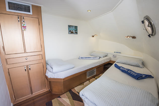 Сидения для дайверов расположены вдоль стен на нижней тиковой палубе, заход в воду удобен из-за отсутствия дополнительных ступенек.