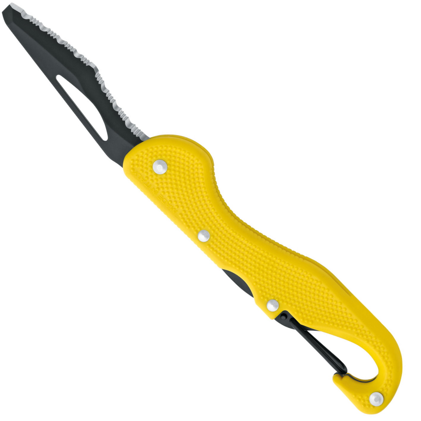 Нож BC Rescue сделан из нержавеющей стали весом в 100 г. Твердость 55-56 HRC. Длина ножа 23 см, а длина лезвия 8 см. Возможность крепления с помощью карабина на рукоятке.