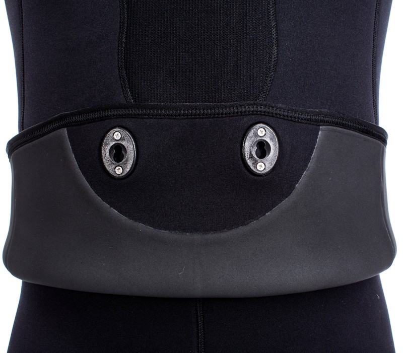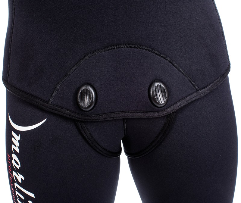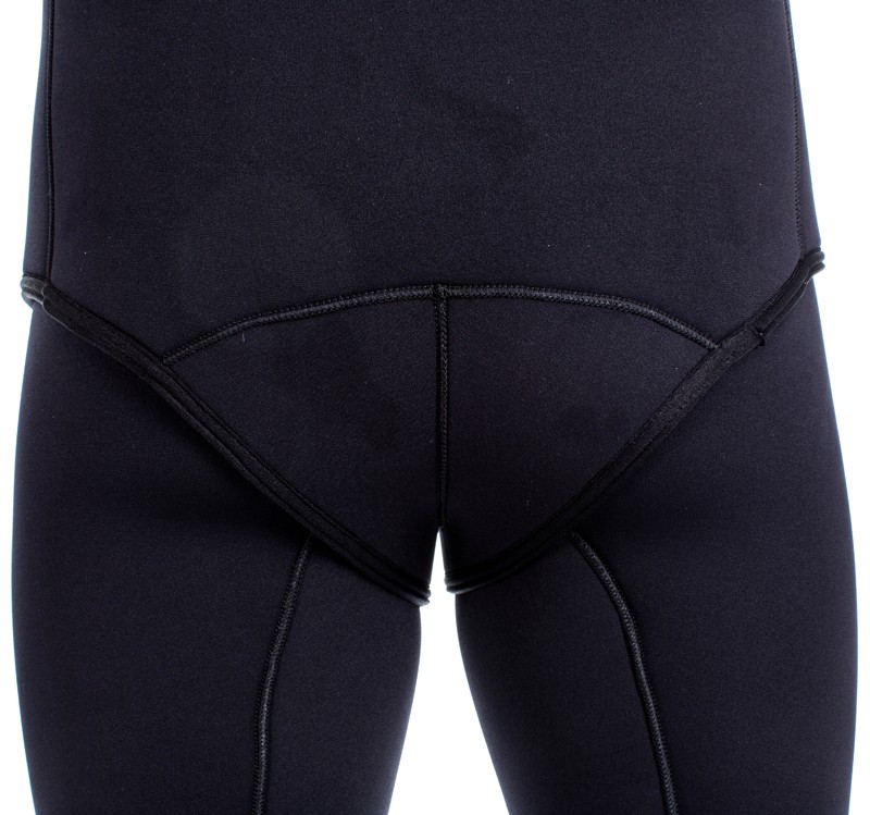 Вшитый в гидрокостюм упор для зарядки ружей, в отличии от приклееных аналогов, исключает отрывание его в процессе эксплуатации. Материал duratex (дюратекс) защищает колени костюма от преждевременного истирания.