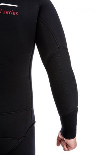 При изготовлении этого гидрокостюма применяется эластичный, мягкий неопрен фирмы Sheico. Наружное покрытие изделия – черный нейлон, внутренняя поверхность – открытая пора.