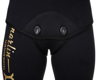 В брюках-комбинезоне, в области майки, применяется меньшая толщина неопрена (в моделях толщиной 7 и 9 мм) для облегчения дыхания охотника, в то же время, в районе солнечного сплетения, добавлена специальная вставка из более толстого неопрена для облегчения зарядки ружья.